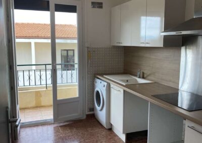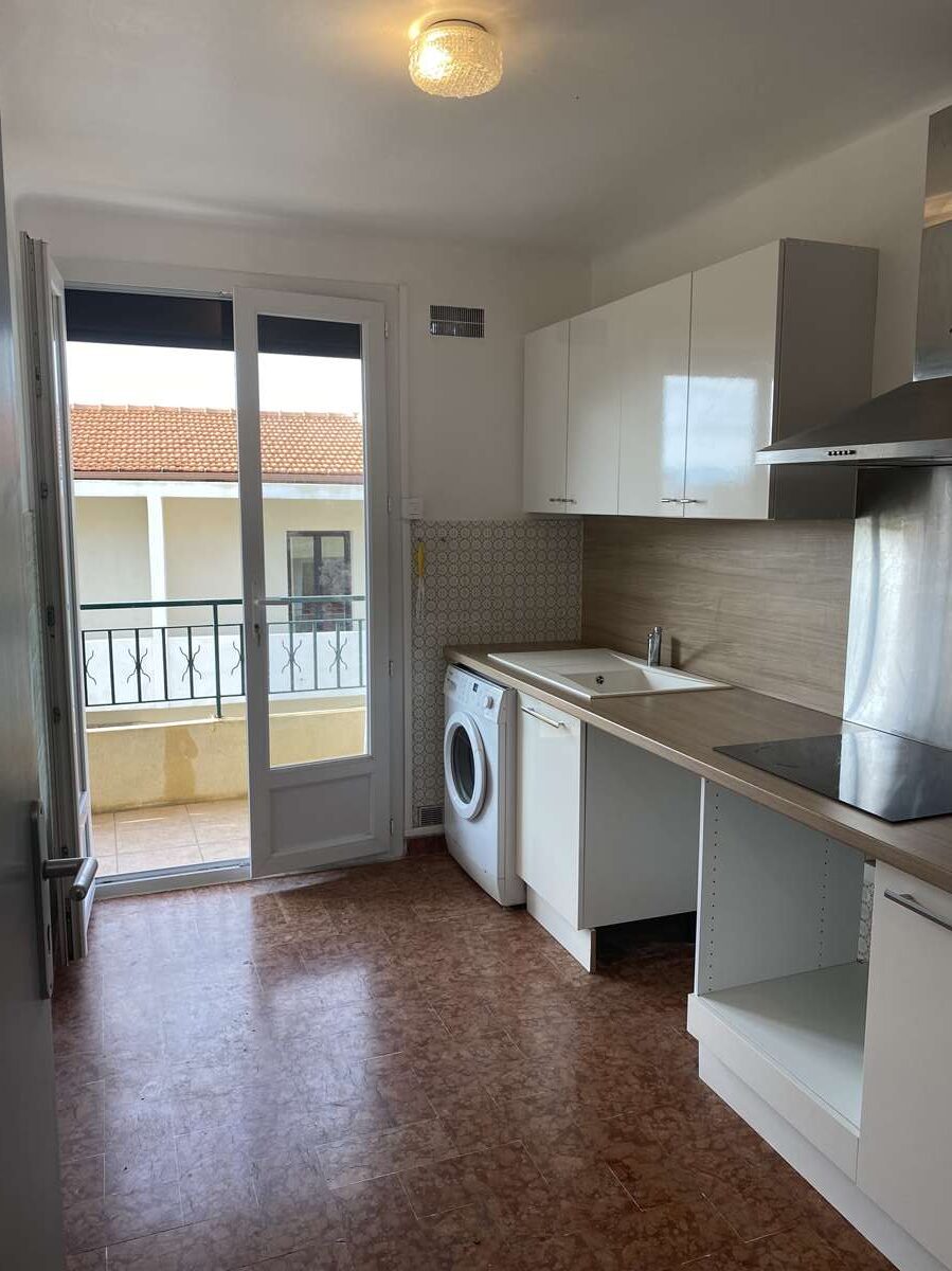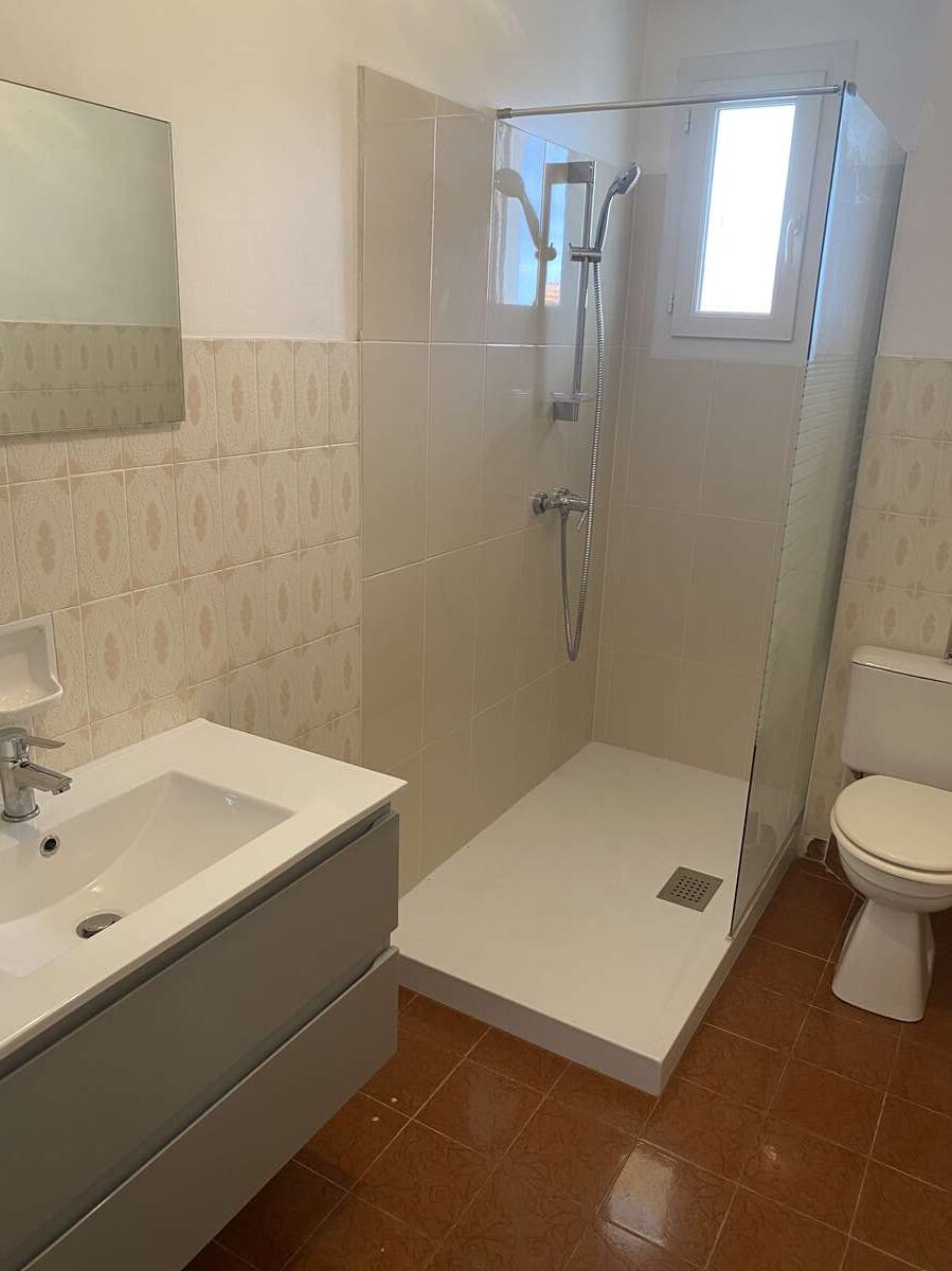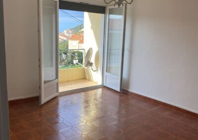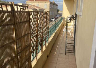 Il se trouve au deuxième étage sans ascenseur d’un petit immeuble de quatre étages et bénéficie d’une belle terrasse filante avec vue mer.
